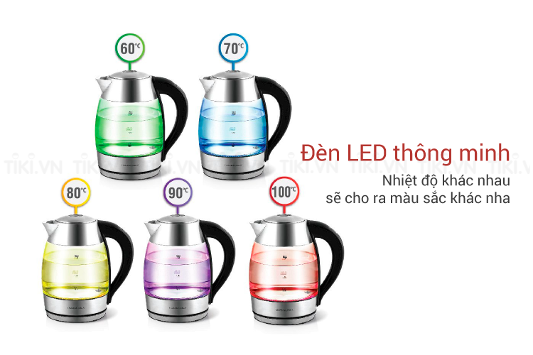 Ấm điện thủy tinh siêu tốc có điều chỉnh nhiệt độ Lock&Lock EJK341 có thiết kế đẹp mắt với hệ thống đèn LED chiếu sáng đặc biệt, nhiệt độ khác nhau thì cho ra màu sắc khác nhau, thuận tiện sử dụng. Thân bình được làm bằng chất liệu thủy tinh cao cấp sáng bóng và đảm bảo an toàn cho sức khỏe. Bình có công suất hoạt động mạnh mẽ lên đến 1850 – 2200W giúp đun sôi nước nhanh và dung tích lên đến 1.8 lít.