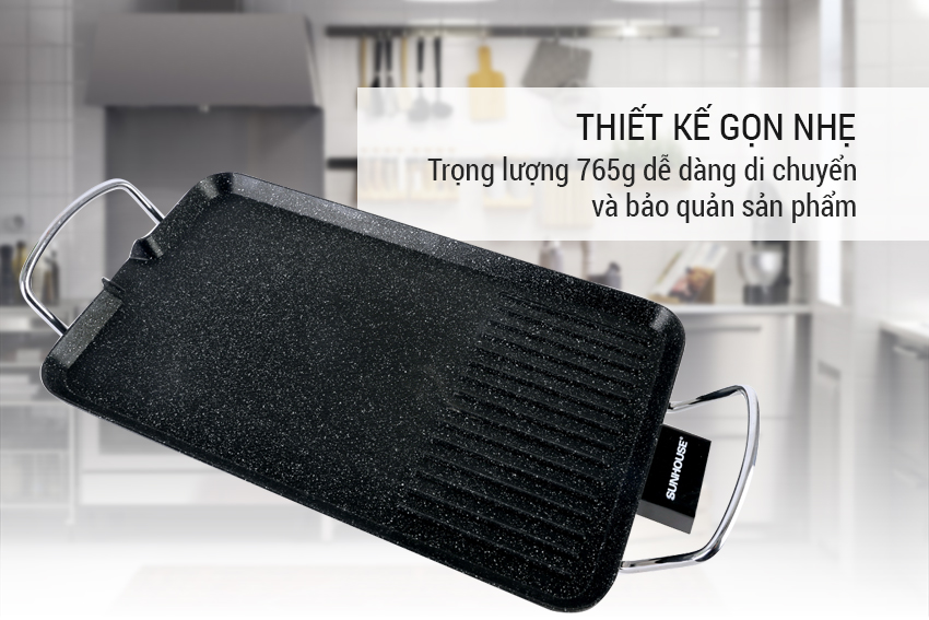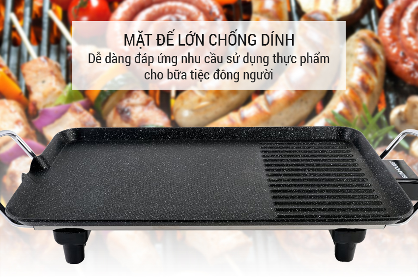Mặt bếp được làm từ nhôm cao cấp, kích thước rộng rãi, dễ dàng đáp ứng nhu cầu sử dụng thực phẩm cho bữa tiệc đông người. Trên bề mặt bếp được phủ 2 lớp chống dính siêu bền, làm giả đá rất đẹp và bắt mắt.