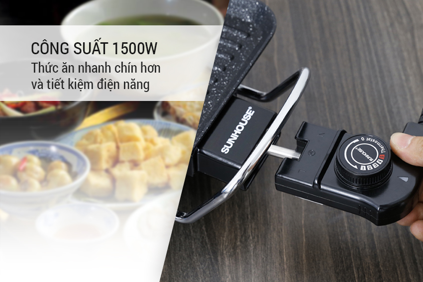 Bếp nướng điện Sunhouse SHD4607 có công suất 1500W mang đến khả năng làm nóng nhanh, giúp bạn dễ dàng chế biến các món nướng và tiết kiệm điện năng hiệu quả cho gia đình.