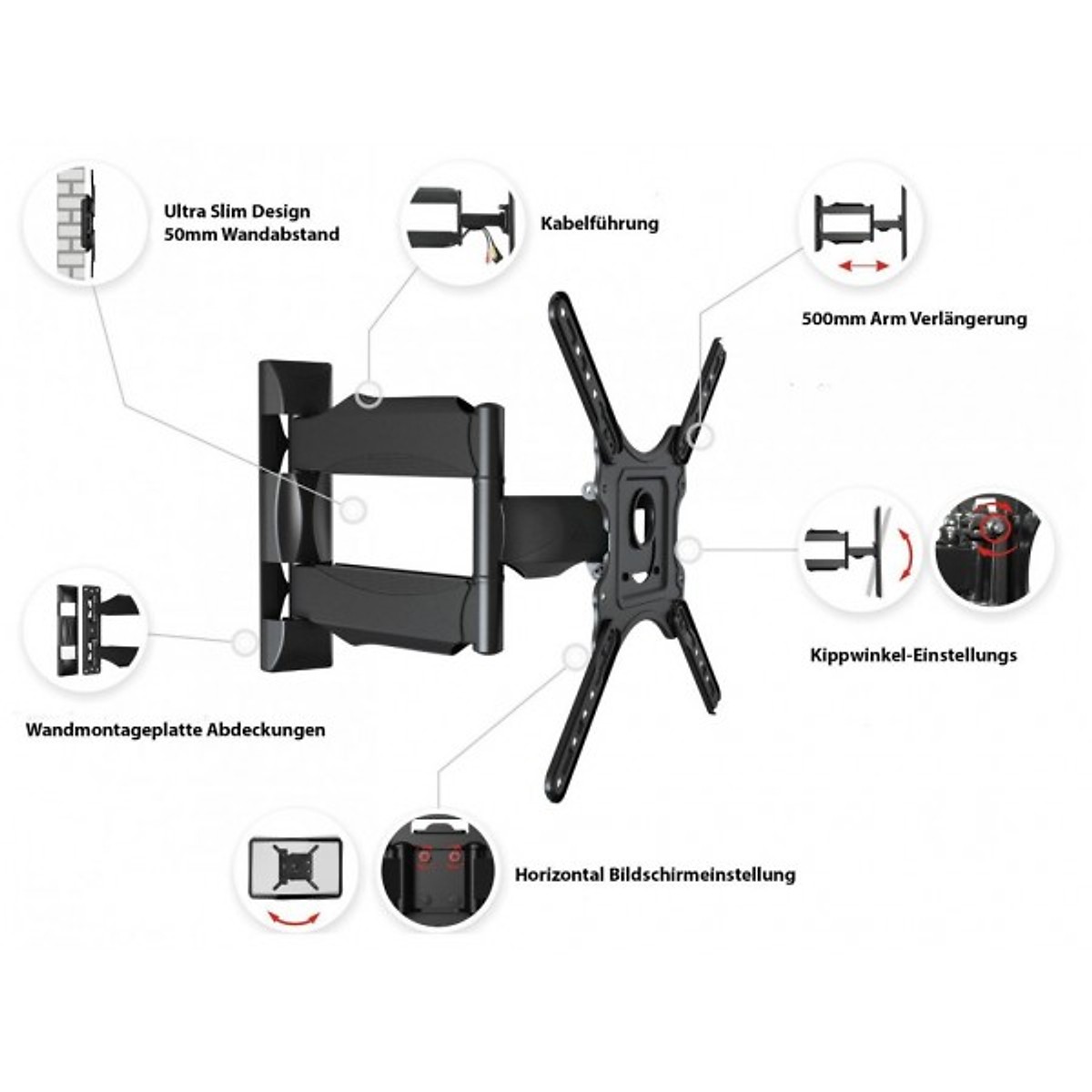 Công nghệ thiết kế tiên tiến làm cho góc nhìn dễ dàng và thuận tiện. Quản lý cáp Gọn gàng và ngăn nắp được thiết kế làm cho dây cáp của bạn kết nối dễ dàng và tránh rắc rối nhất. Tiêu chuẩn phụ kiện của chúng tôi Cho phép bạn mở rộng treo  tivi VESA ( tâm lỗ vít ) khoảng cách từ 200*200mm để 400*400mm. Cánh tay có thể mở rộng đến 498.9mm tối đa.