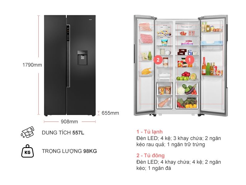 Tủ Lạnh Side By Side Inverter Aqua AQR-I565AS-BS (510L) – Hàng Chính Hãng