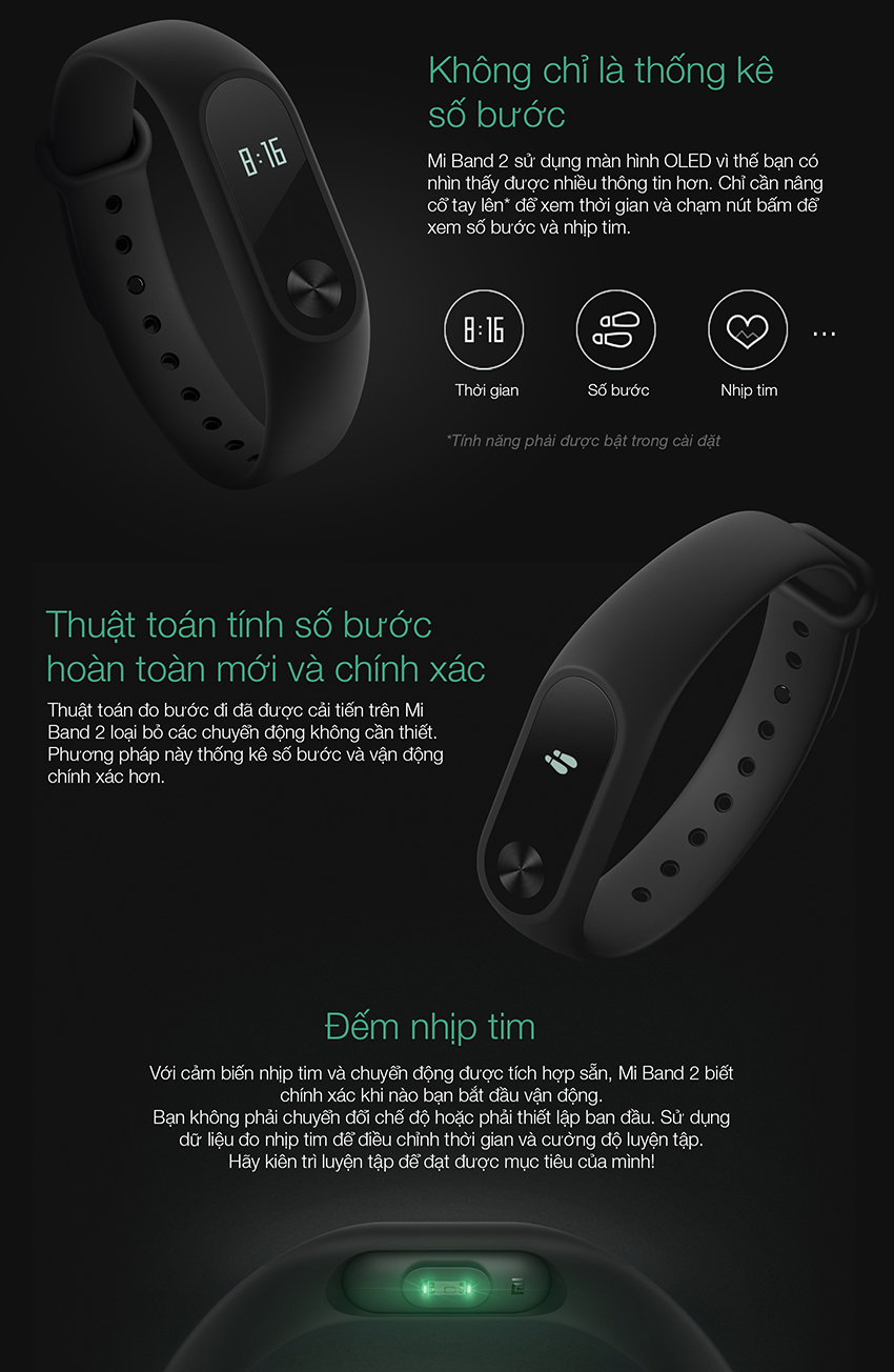Nhịp tim của bạn cũng như tổng số bước chạy khi tập thể thao được đo lại chính xác nhất nhờ các cảm biến ADI tiên tiến tích hợp trong Miband 2, đưa ra các số liệu thống kê sau buổi tập cho bạn có thể theo dõi và cải thiện tình trạng sức khỏe của mình.