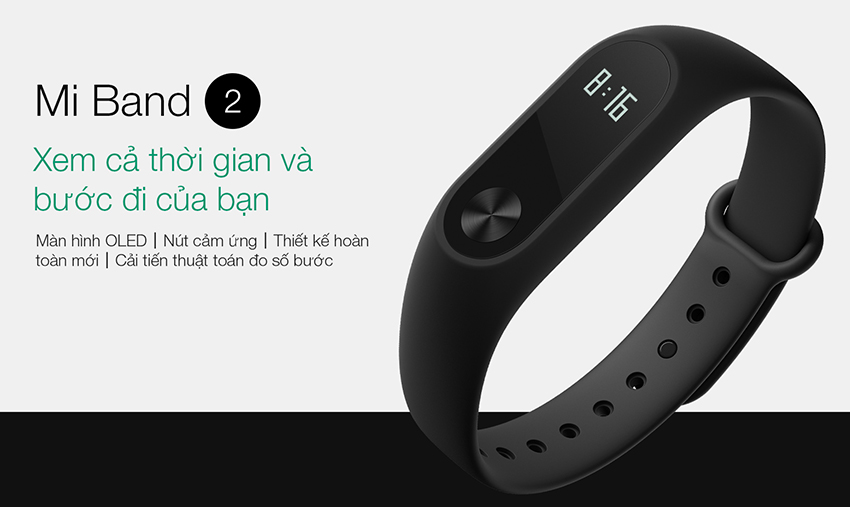 Vòng tay thông minh Miband 2 với sự nâng cấp rất đáng để chờ đợi là sự xuất hiện màn hình OLED giúp xem giờ cũng như theo dõi các hoạt động như đếm bước chạy, đo nhịp tim ngay trên màn hình của Miband 2. Có 1 nút bấm để chuyển đổi xem các thông tin trên.